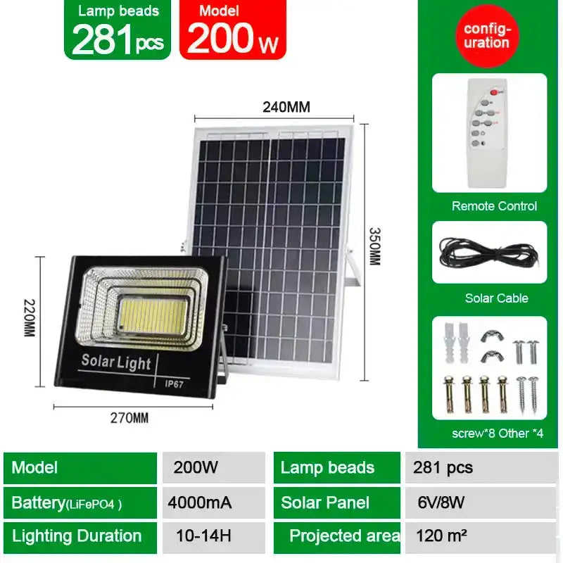 IP67 Waterproof Outdoor Solar Flood Lights 15W to 500W Versatile & Efficient Home Use Lighting Solar Powered