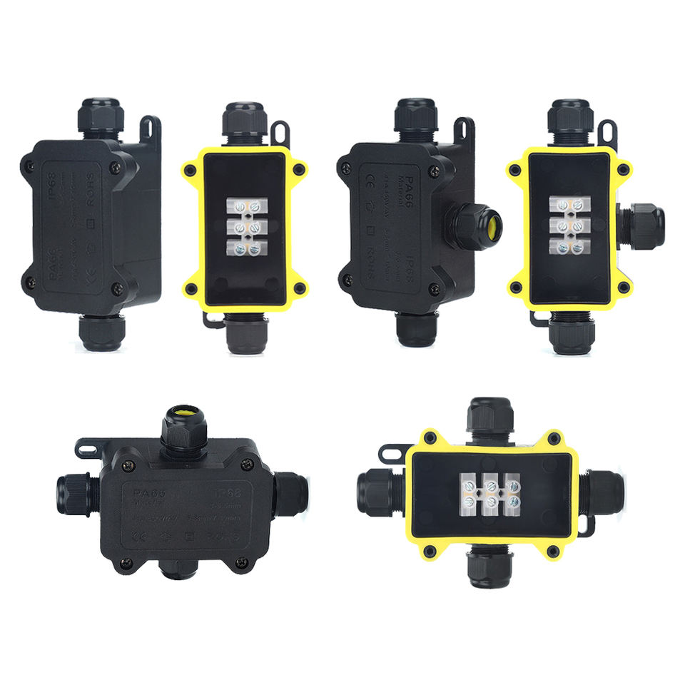 IP68 Outdoor Waterproof RF Power Junction Box Black 2/3/4 Way Mini Connector with Aluminum Terminal Designed for Buried Wires