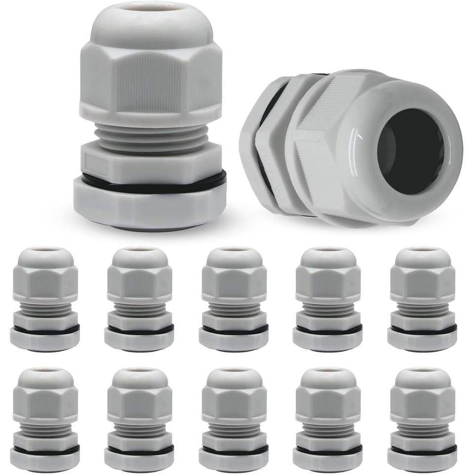 IP68 Waterproof Nylon Cable Gland Grey PGPG9 Plastic Connector with Locknut Outdoor and Underwater Cable Glands