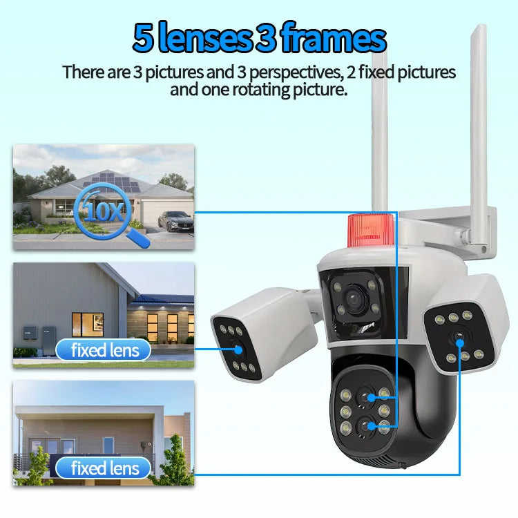 IPC360 16MP 8K Night Vision Wireless Outdoor CCTV Surveillance Camera 4G WIFI Home Four-Lens Three Screens System Includes Alarm