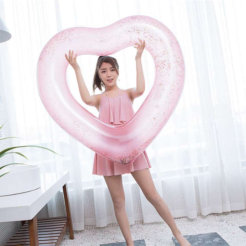 IRIS Glitter Heart PVC Inflatable Swimming Ring Pool Float for Adults Beach & Party Fun