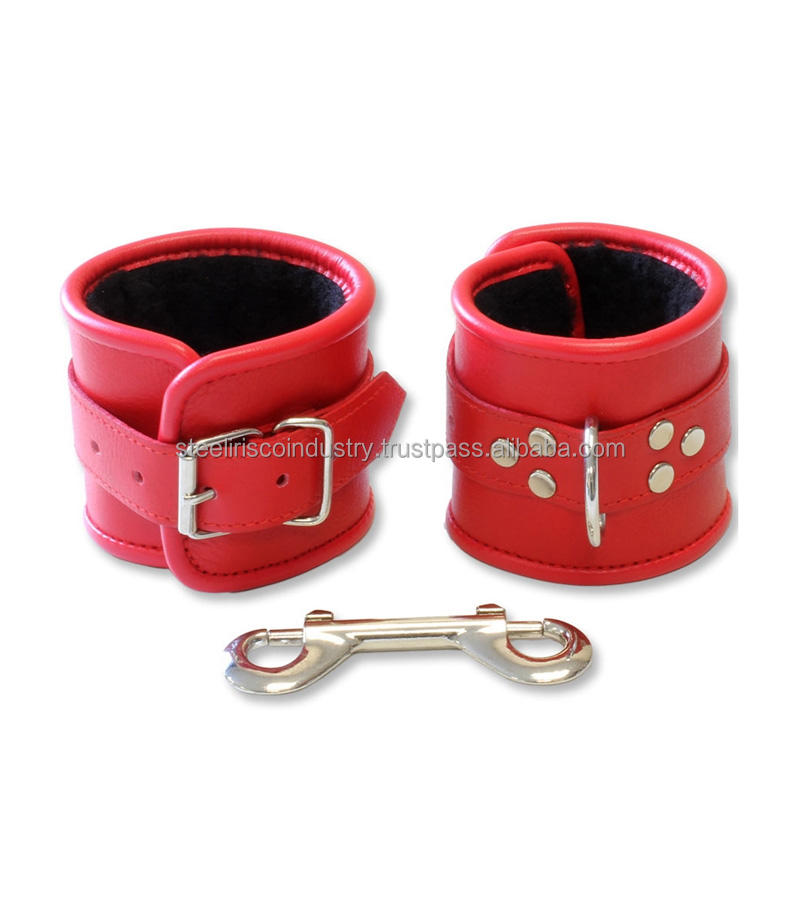 IRISCO RED Padded Cowhide Leather BDSM Bondage Gear Handcuffs & Restraints Kinky Wrist Cuffs Fetish Wear Adult Toys