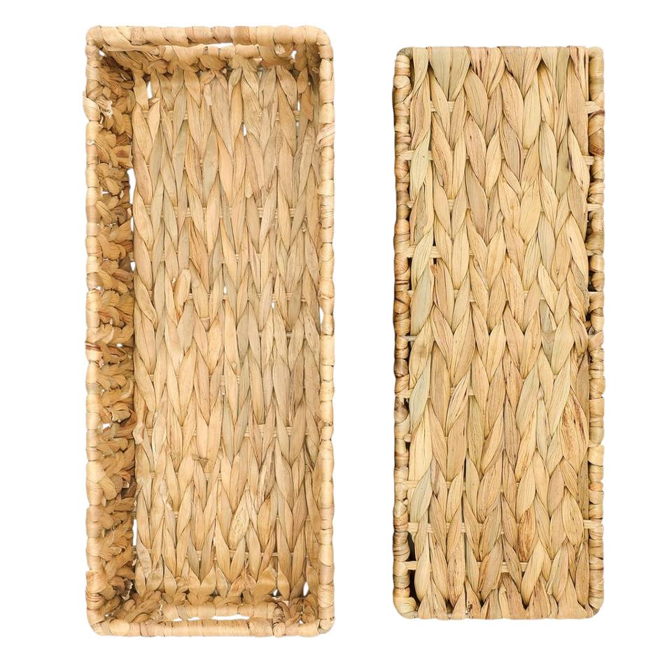 ISLA Set of 2 Handwoven Hyacinth Rect Tank Baskets Wicker Organizer Bins with Cutout Handles Bathroom Kitchen Pantry Wholesale