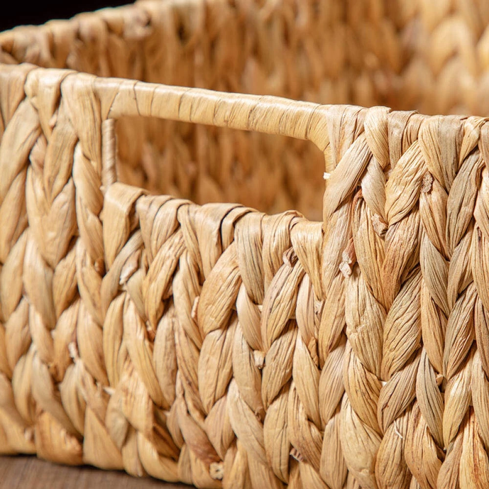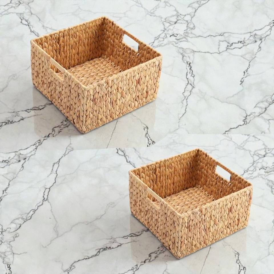 ISLA Set of 2 Handwoven Hyacinth Nestable Square Storage Baskets Open Front Organizer Bins with Built In Handles Wholesale OEM