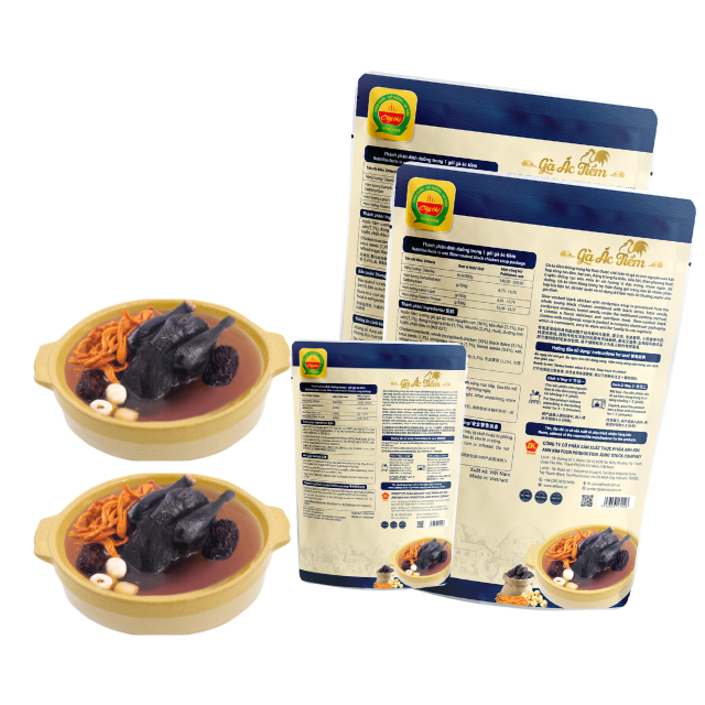 black chicken (30%), cordyceps (1,1%),...Ingredients
