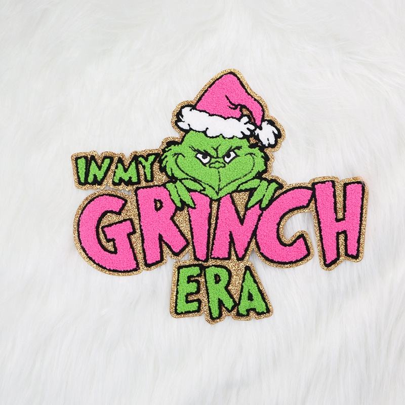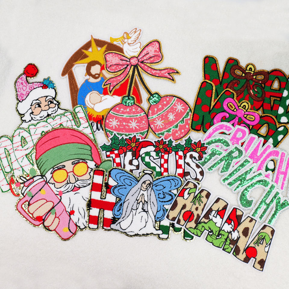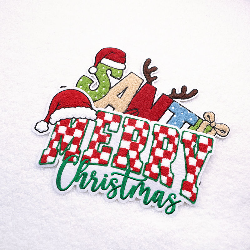 ISO9001 & BSCI Custom Bow Large Sequin Glitter Iron on Merry Christmas Sequin Chenille Patch for Clothes Hoodie