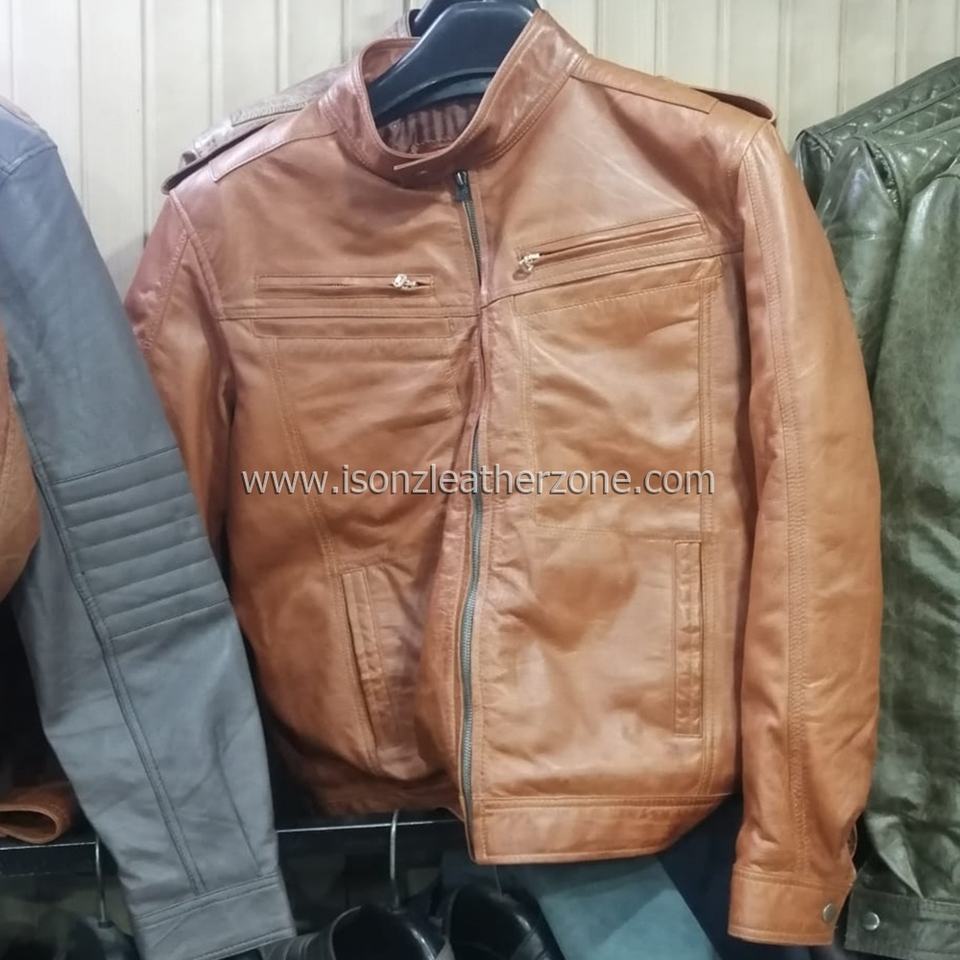 ISONZ High Quality Unisex Tan Color Cow Skin Genuine Stand Collar Heated Light Fishing Trench Jacket Formal Manufactured ISONZ