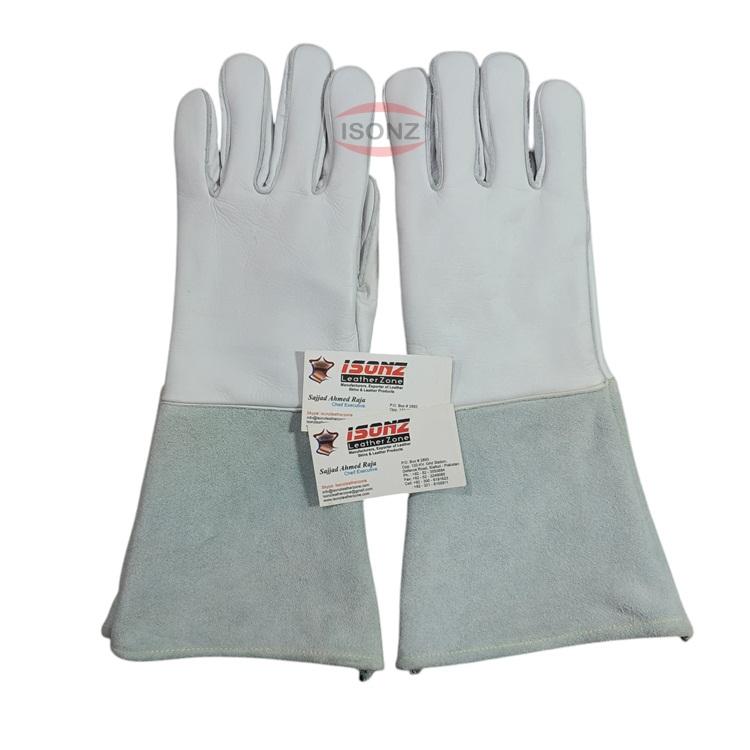 ISONZ Leather Zone Premium Quality Cowhide White 750 Stick Welding Gloves Argon Compatible Impact Level 3 Silicone-Free