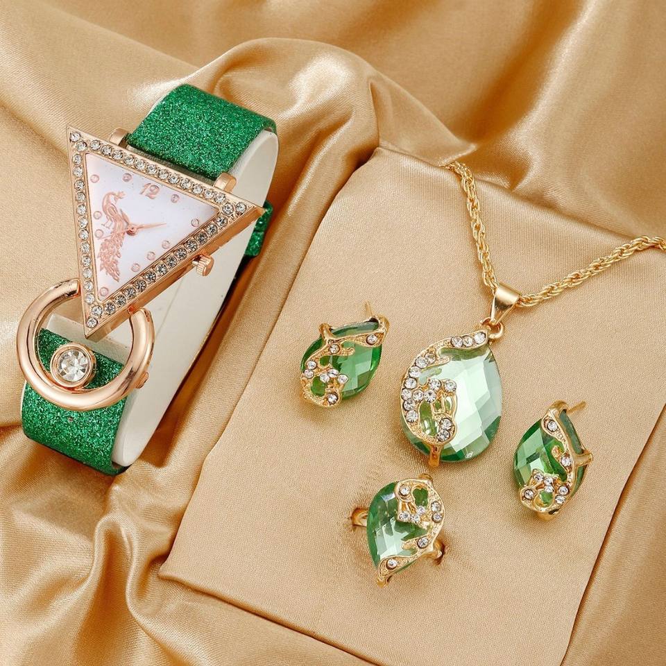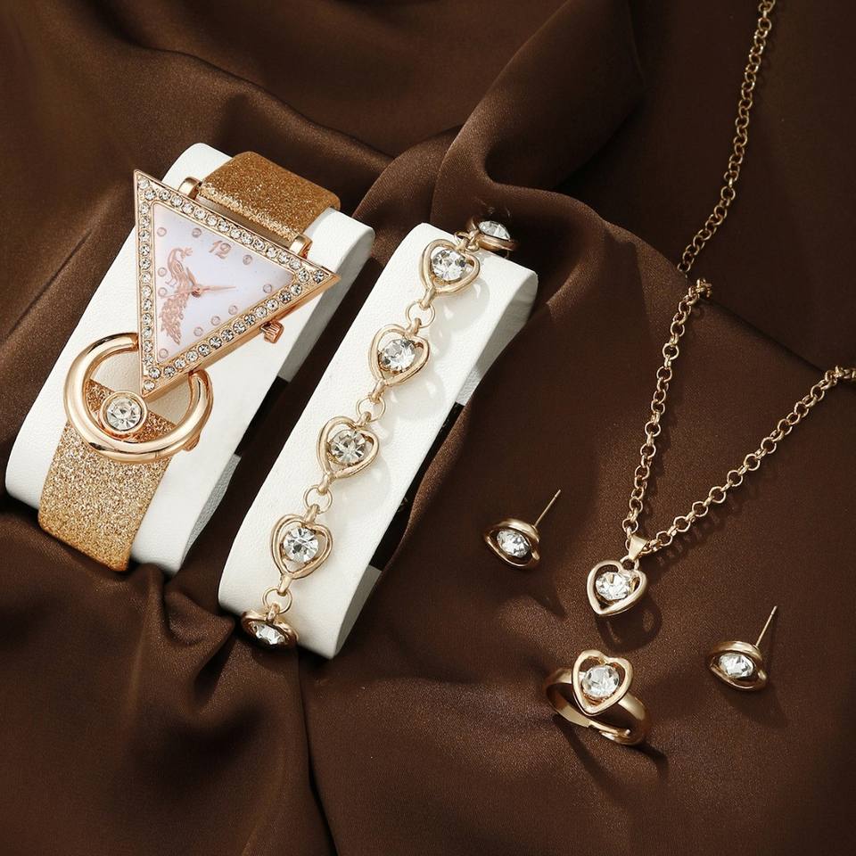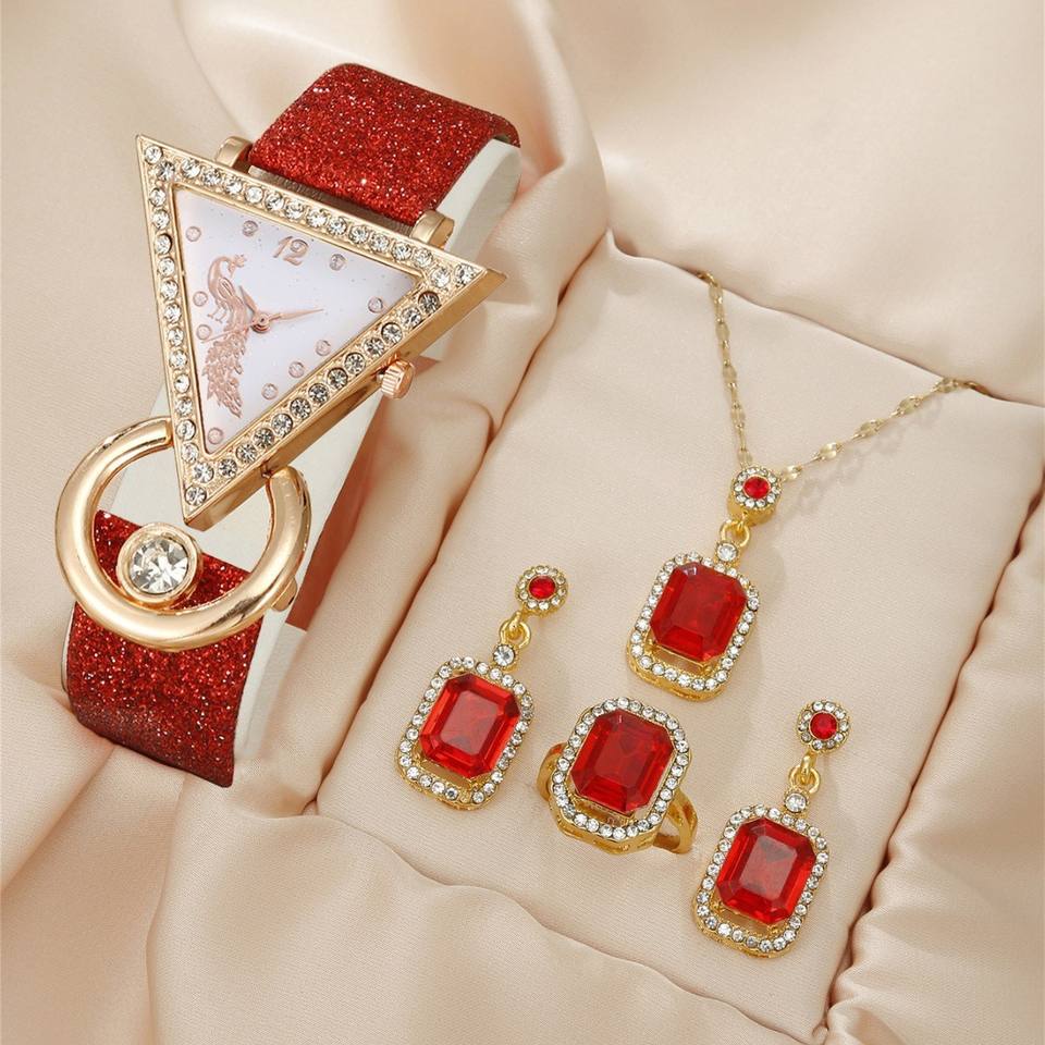 IStapromo Gifts Inverted triangle diamond inlaid frosted leather peacock dial women's fashion watch casual jewelry quartz watch