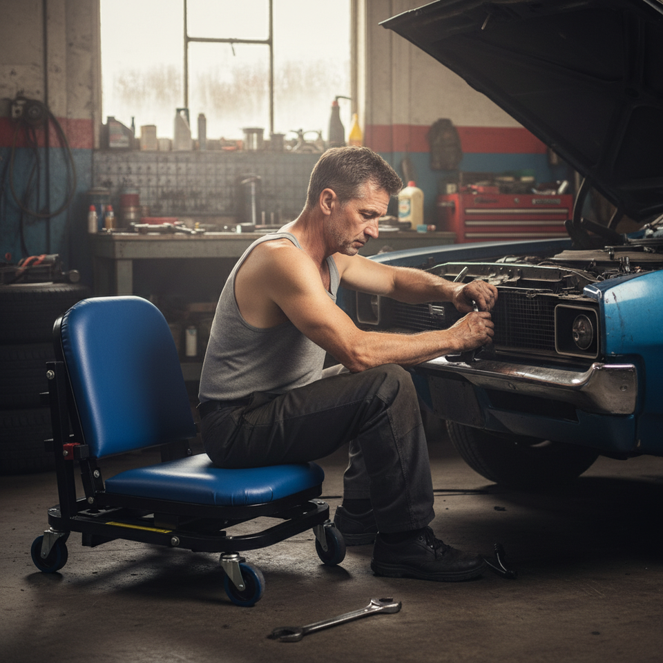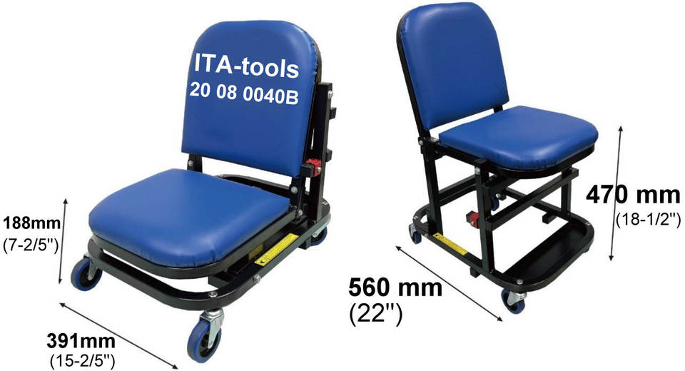 ITA Tools 218mm (8.6") Creeper Seat / 483mm (19") Roller Stool Blue 2-IN-1 Adjustable 150kg Capacity