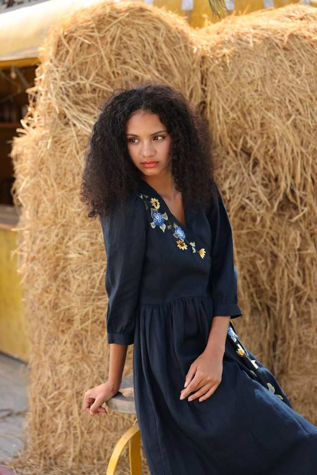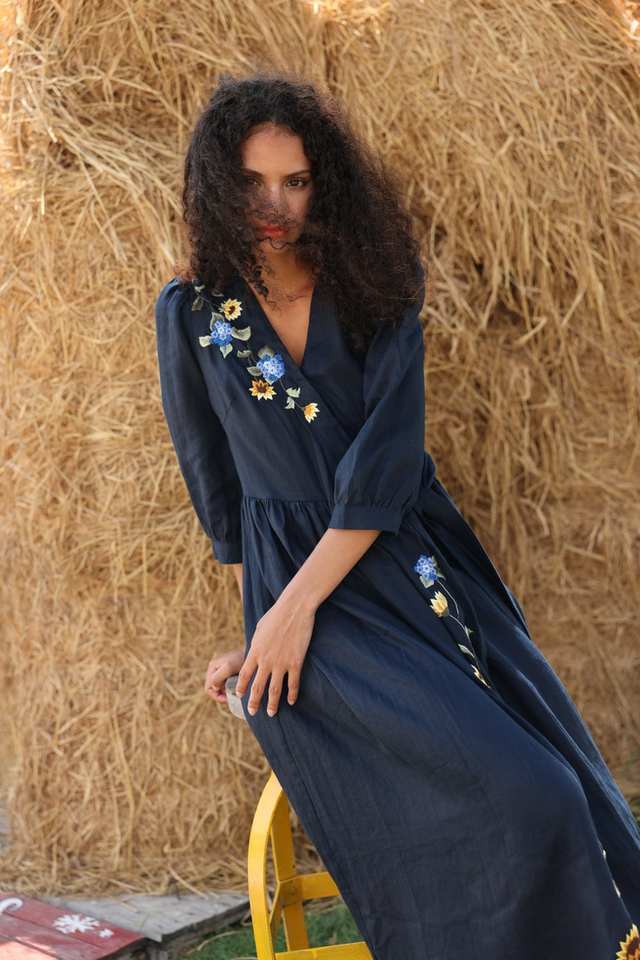 IVY Hand Embroidered Linen Dress For Women Elegant Wrap Style Wedding Guest And Cocktail Events