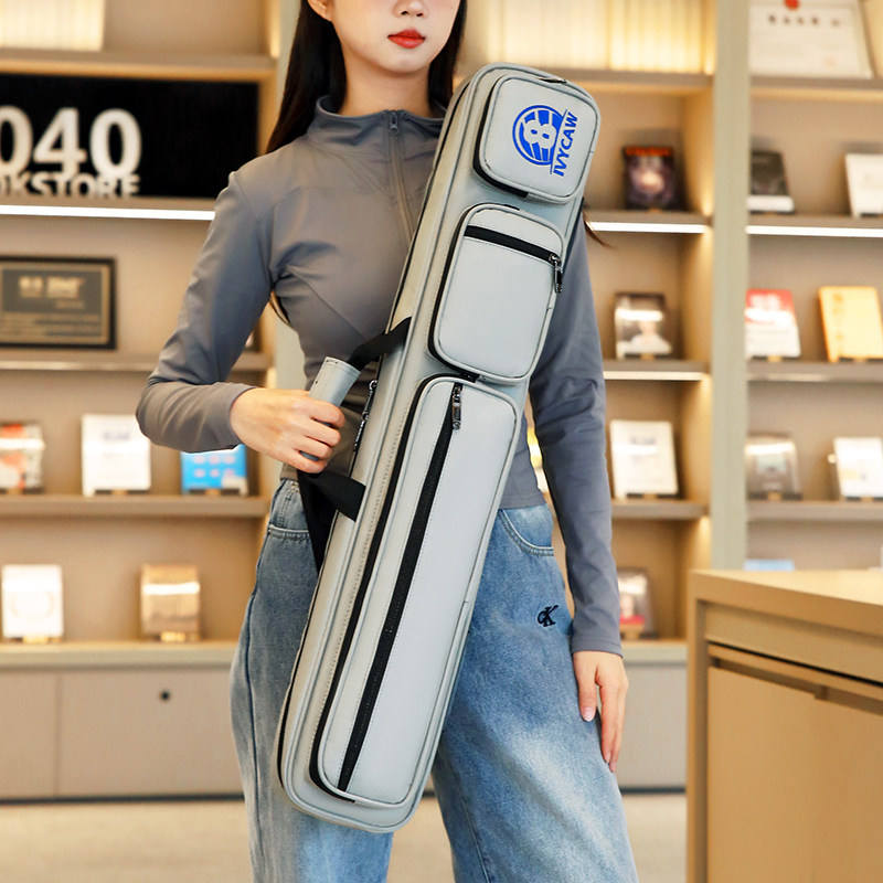 IVYCAW 8-Compartment Aluminum Alloy 1-Hole Billiard Cue Case for 4 Shafts + 4 Butts Soft Split Joint Pool Stick Bag