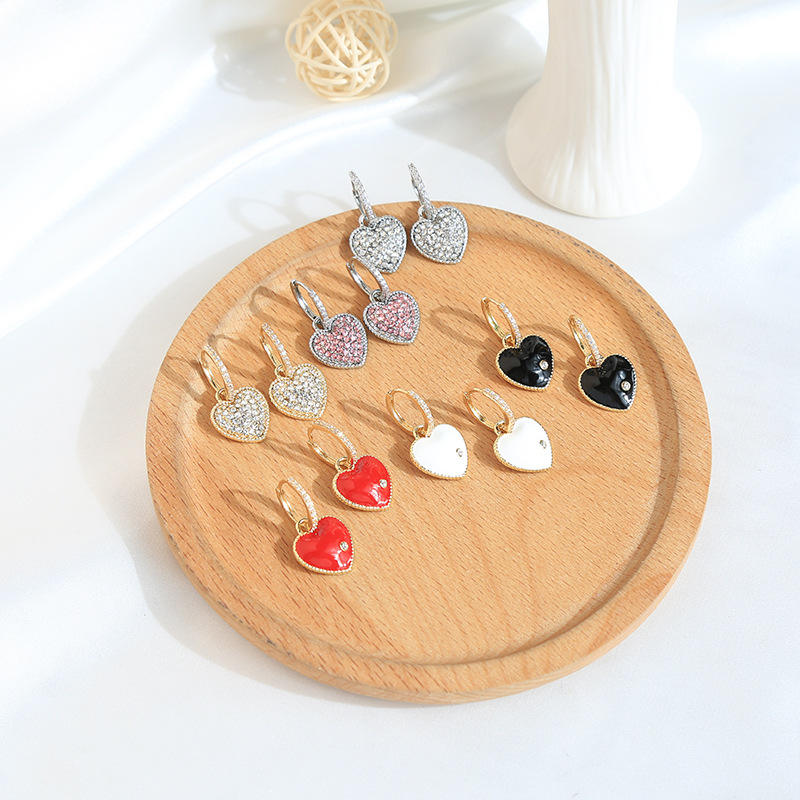 IWO3-J Luxury Red Heart Stud Earrings for Women French Retro No-Ear Piercing Trendy High-End Styling