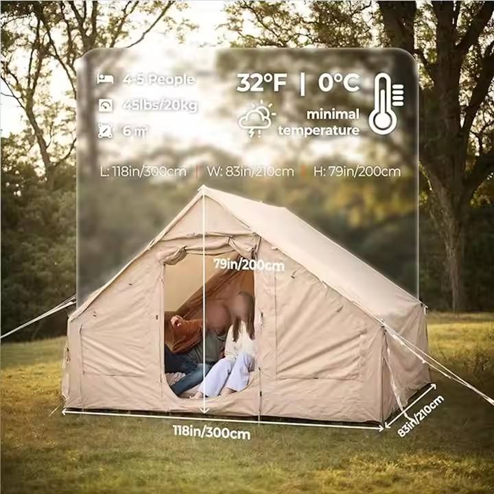 Iatable Waterproof Windproof 4 Seasons Family Camping Tent Easy Setup Hand Pump Oxford Cabin with Mesh for Glamping