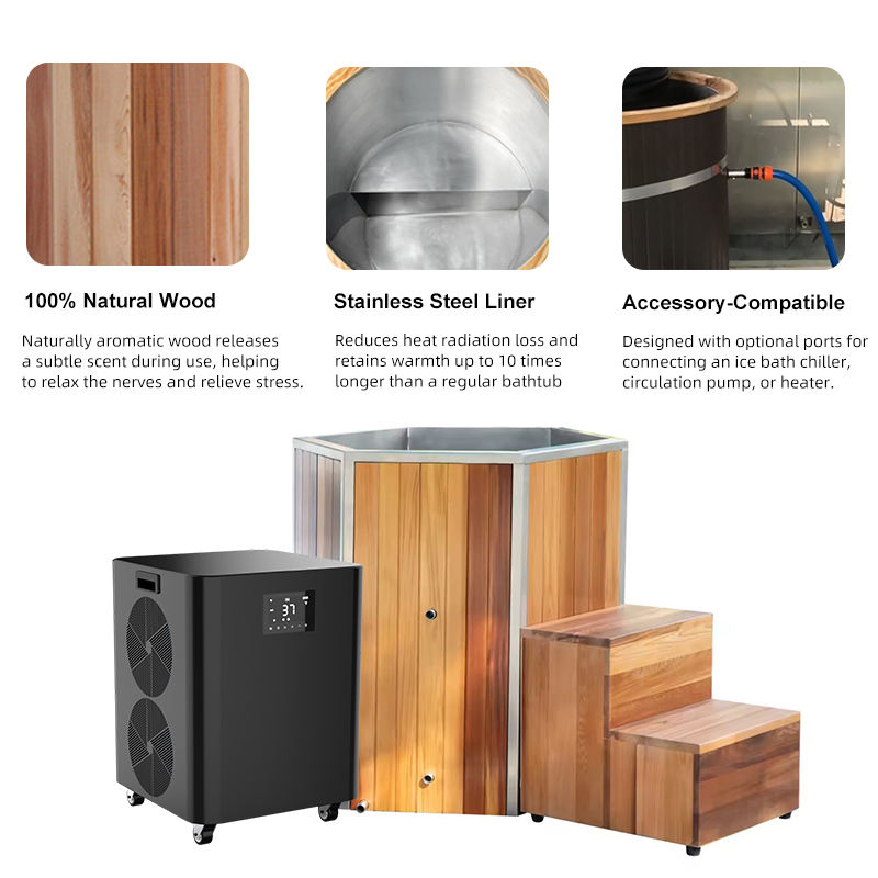Ice Bath Tub With Chiller And Filter Portable Wood Barrel Immersion Cold Therapy Plunge 1hp Water Chiller Cooled Ozone Free