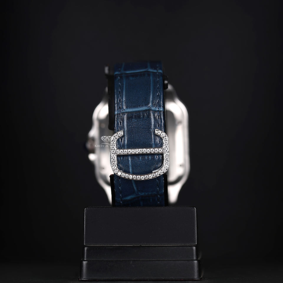 Keywords:Blue Leather White Tone Roman Dial Square Watch