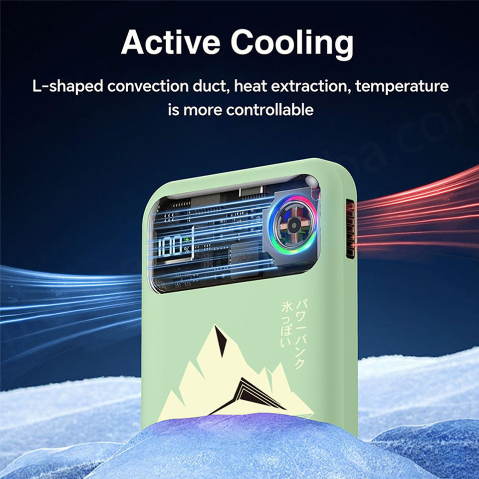 Ice Charge 10000mAh Intelligent Cooling Fan Portable Fast Charger Wireless 20W Power Bank with Built-in Fan