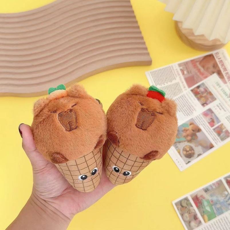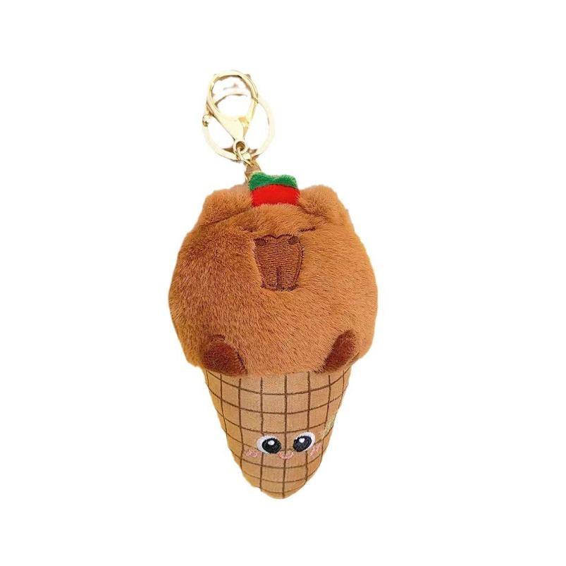 Ice Cream Capybara Plush Pendant Cartoon Brown Capybara Plushie Keychain Creative Animal Capybaras Stuffed Doll Keychains