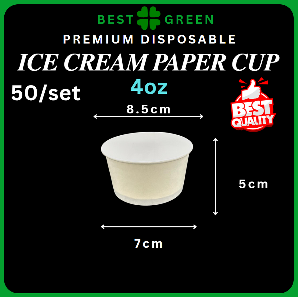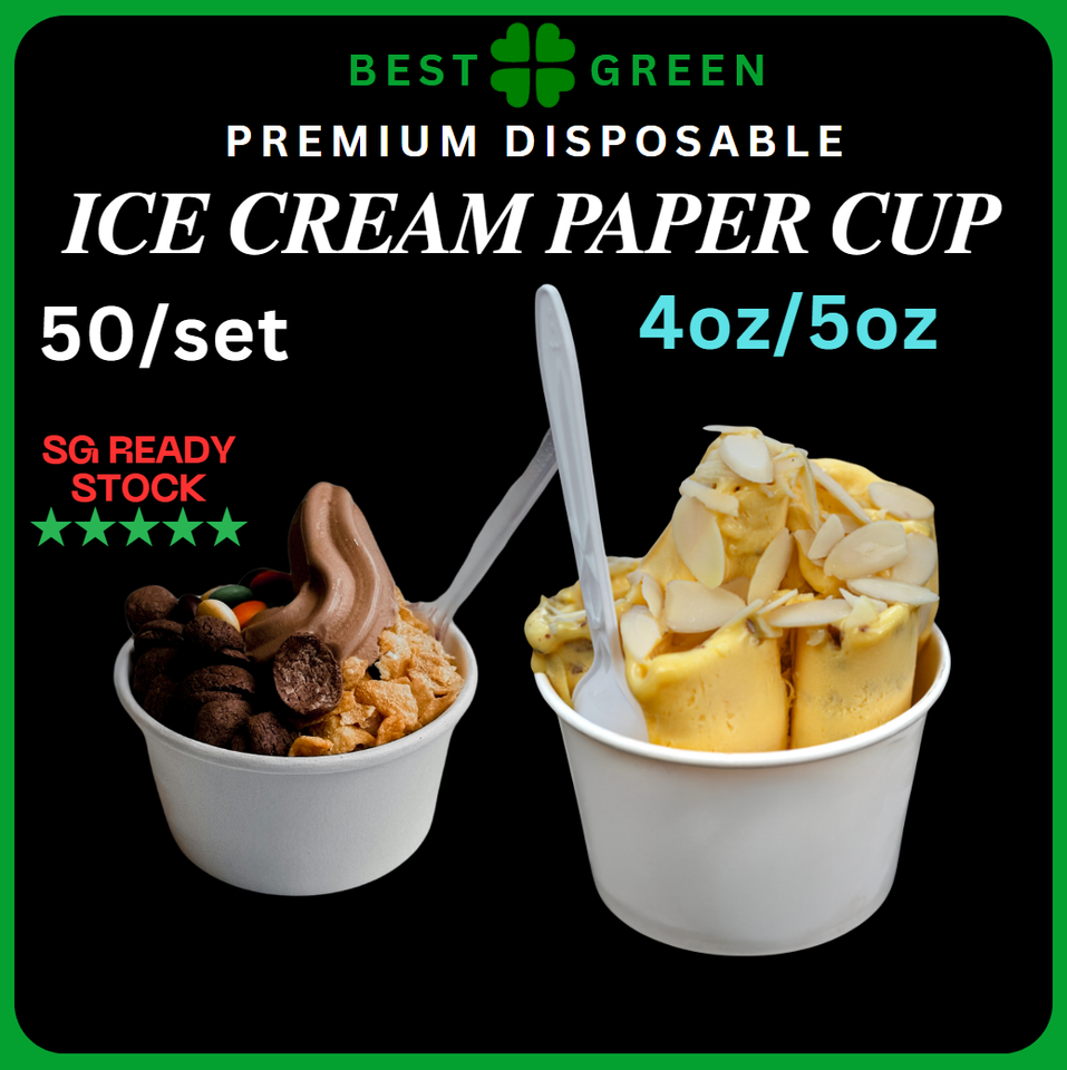 Ice Cream Cup | 4oz, 5oz | With Lid | Round | Disposable | Customizable | Durable| Leak-Proof | Recyclable | Waterproof