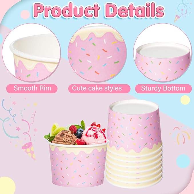 Biodegradable Disposable Food Grade Single Wall Ice Cream Cups Sundae Bowls Kraft Paper Eco-Friendly Hot/Cold Use Party Supplies
