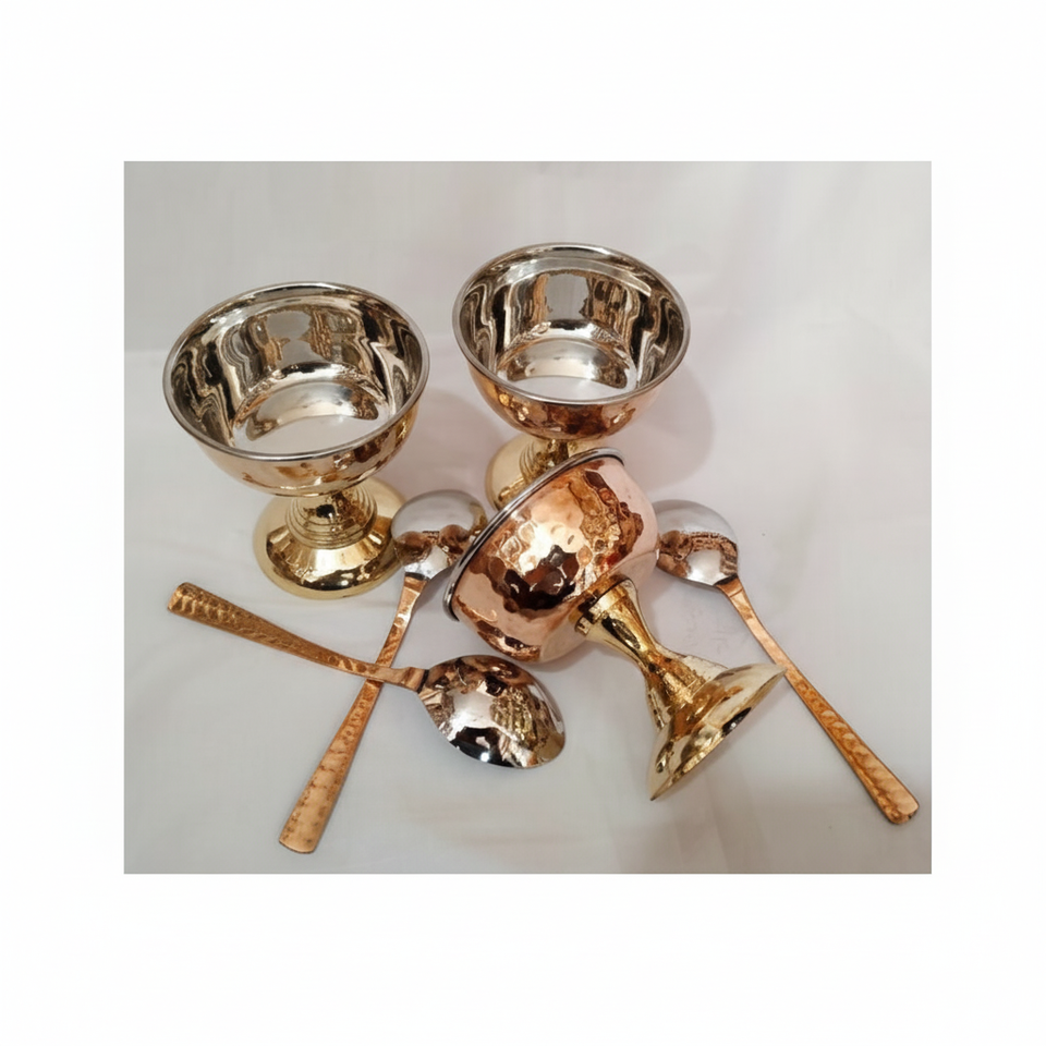 Ice Cream Bowl and Brass Base and Steel Cup and Use for Fruit Dessert Bowls Cup Chips Ice Cream Selling