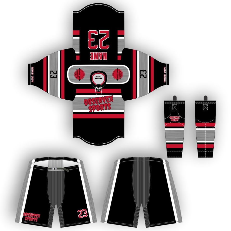 Customized Sublimation Printed 100% Polyester Ice Hockey Jersey Set Lace Pant Shells Socks Featuring Embroidery Technics Quick