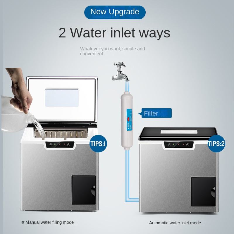 ZK-110 Commercial Silver Stainless Steel Ice Maker 120W 240V 110lbs/50kg/24h Output 4*9 Aluminum Ice Tray Transparent