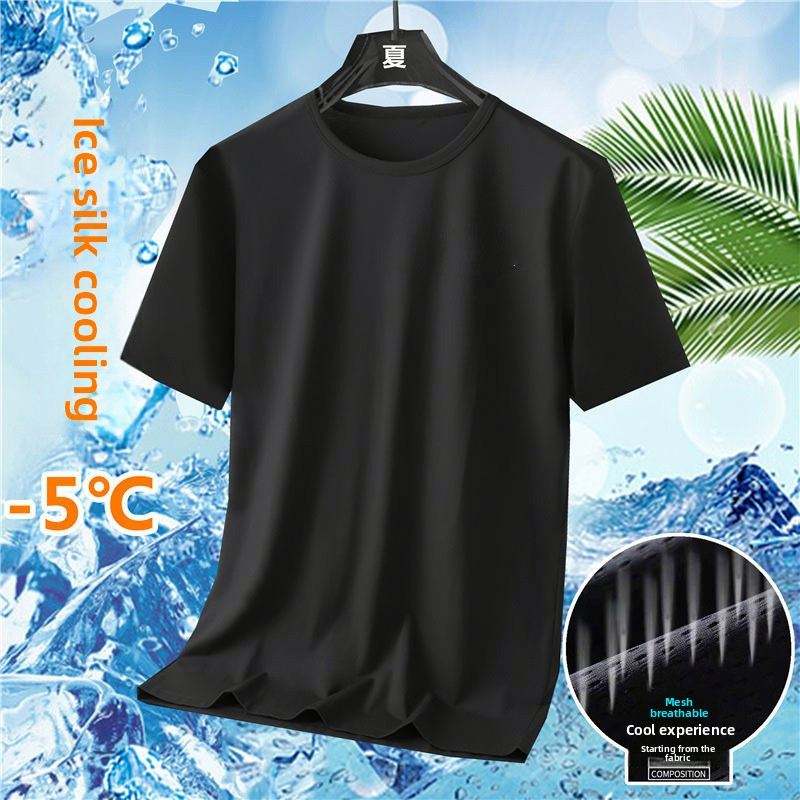 Ice Silk Loose Fit Plus Size Solid Color Casual Short Sleeve Soft Breathable Summer T Shirt