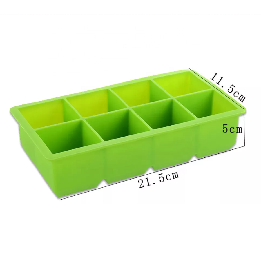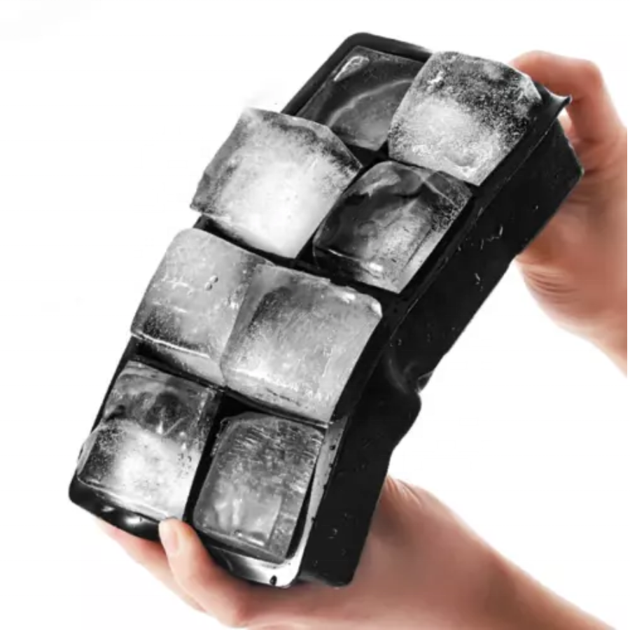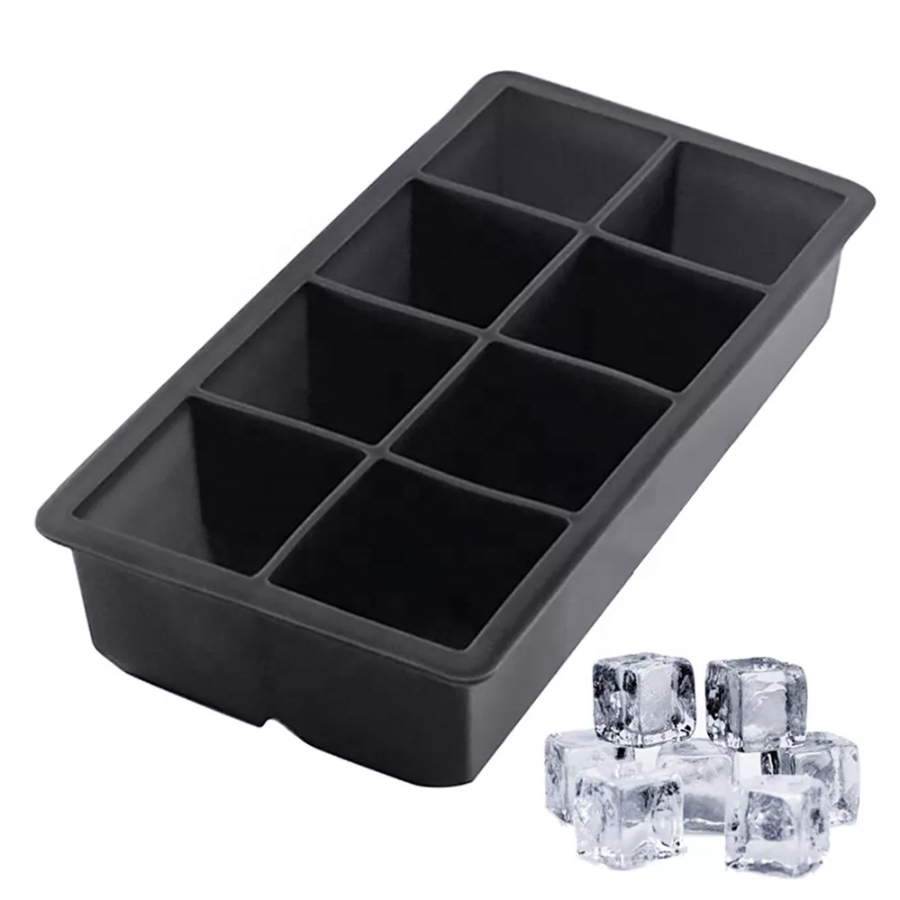 Ice Tray Silicone 8-cavity Square Shape for Whiskey and Cocktail, Stackable Easy Release & Flexible