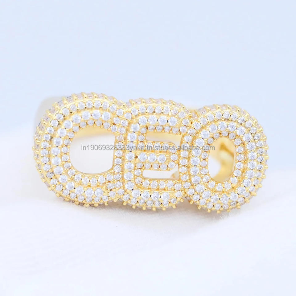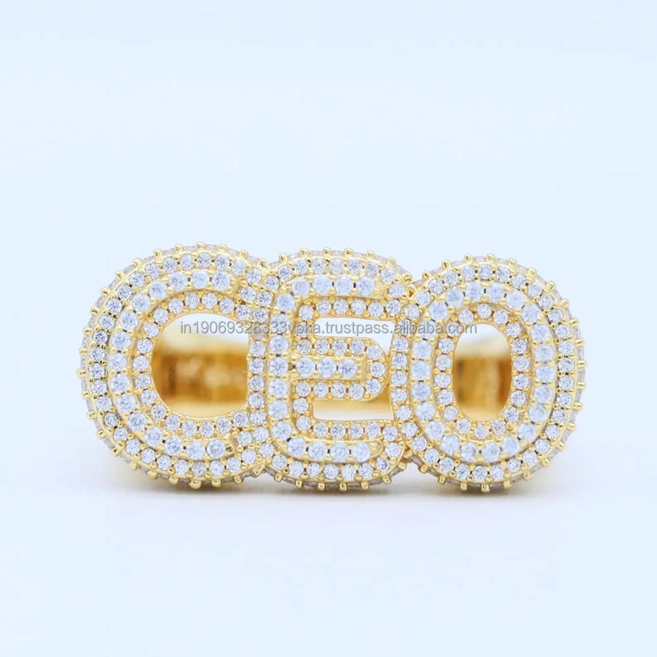 Iced CEO Ring K Gold Statement Letter Ring Moissanite Prong Setting Classic Style in 925 Sterling Silver Unisex Anniversary Gift