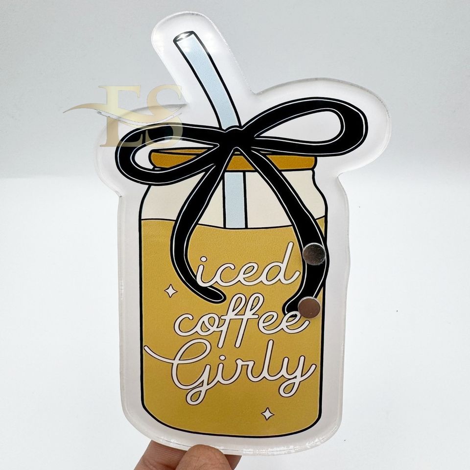 Iced Coffee Girly Acrylic Lash Tiles with Magnets for Eyelash Tweezer Private Logo Sustainable Cup Lash Tile with Black Bow