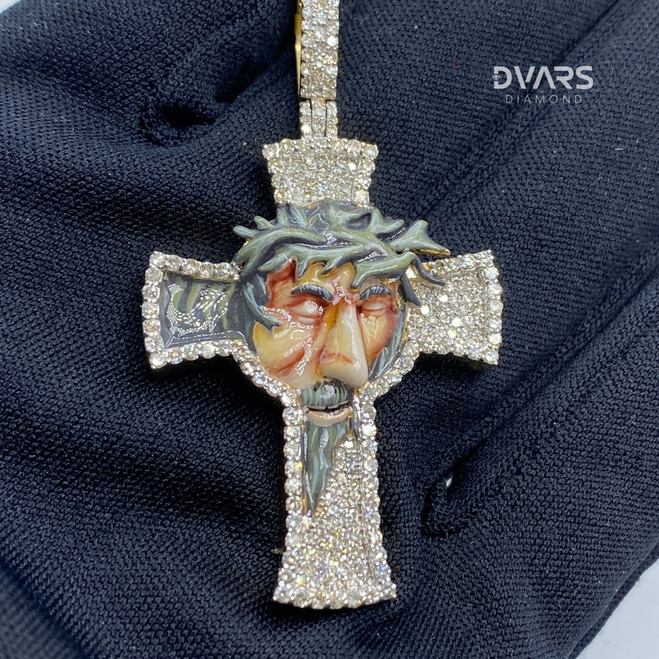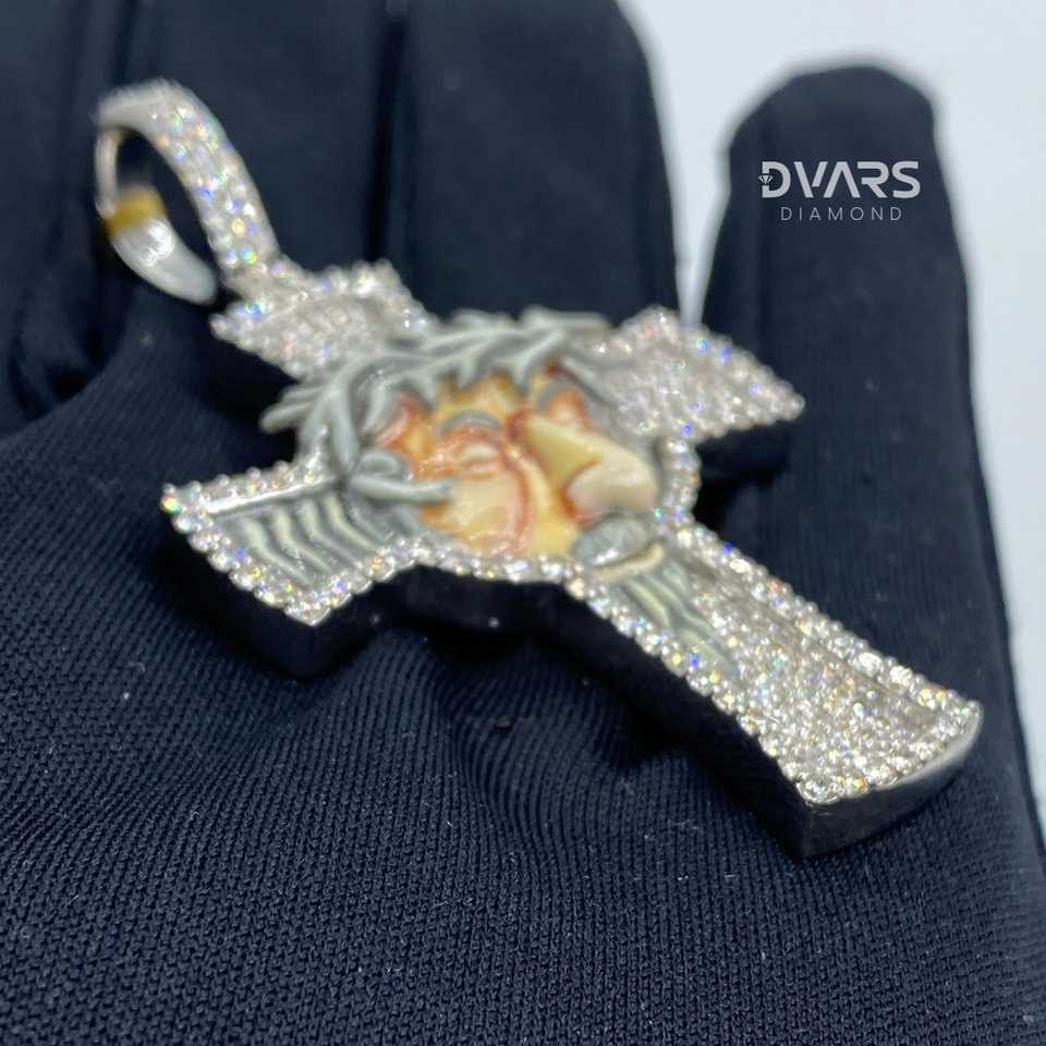 Iced Cross Jesus Face Pendant Moissanite 925 Silver Luxury 18K Gold Plated Custom Men's Hip Hop Christian Jewelry