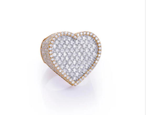 Iced Heart-Shaped Titanium Moissanite Hiphop Unisex Wedding Band Statement Ring