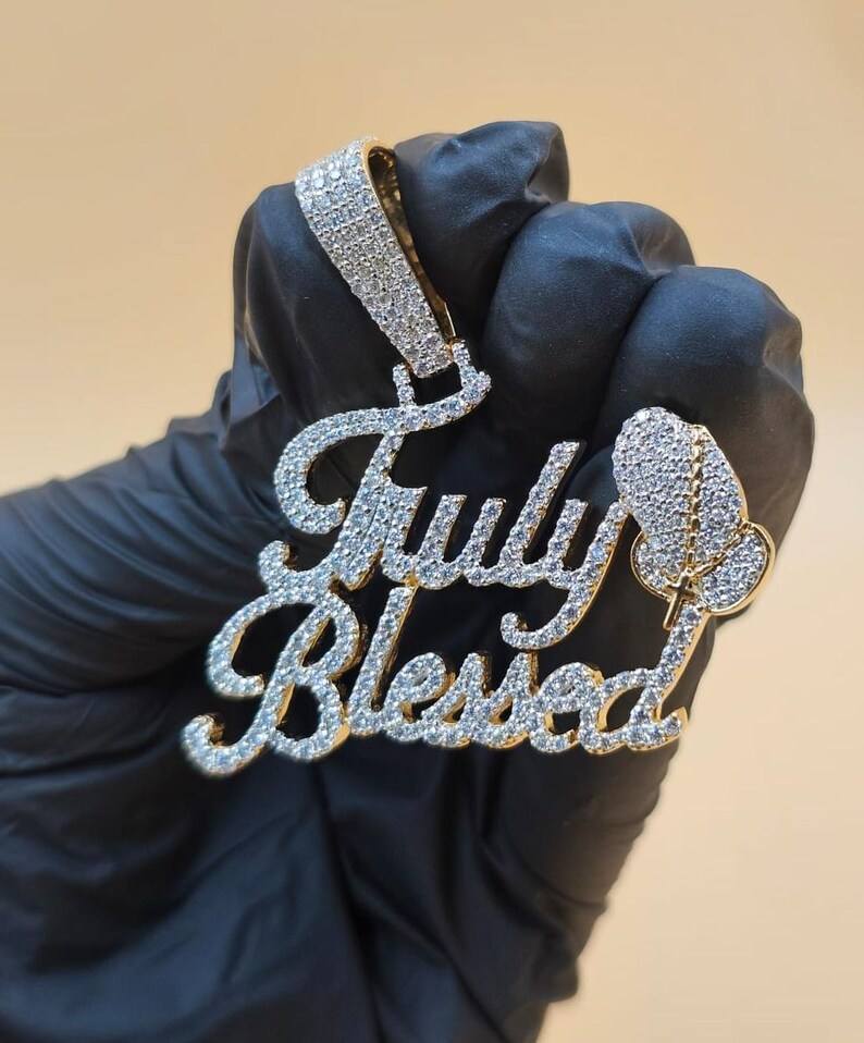 Iced Moissanite Round Diamond Custom Truly Blessed Letter Hip Hop Pendant With 925 Silver Party Fine Jewelry Pendants & Charms