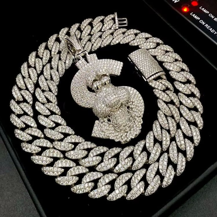 Iced Out $ 14mm VVS Moissanite Miami Cuban Link Chain Pass Diamond Hip Hop 925 Sterling Silver Fine Jewelry Men Necklace Watch