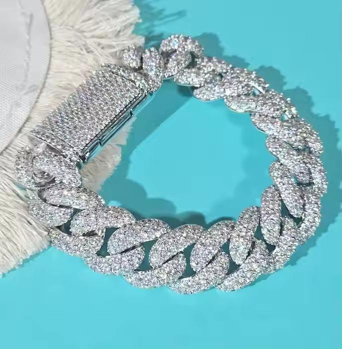 Iced Out 18mm Cuban Link Bracelet VVS Clarity Diamond 7 Inch 8 Inch Hip Hop Jewelry for Women Men Moissanite Bangles Bracelets