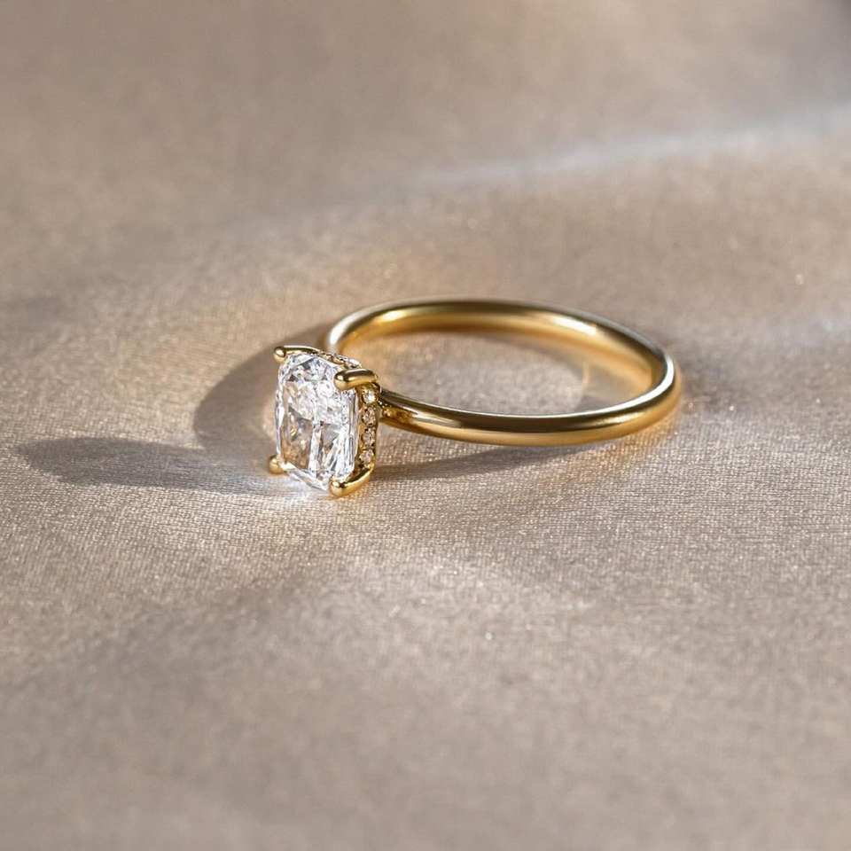 Iced Out 2.18 Carat Cushion Cut Moissanite Solitaire Ring Featuring Hidden Halo Design in 925 Sliver for Elegant Brides