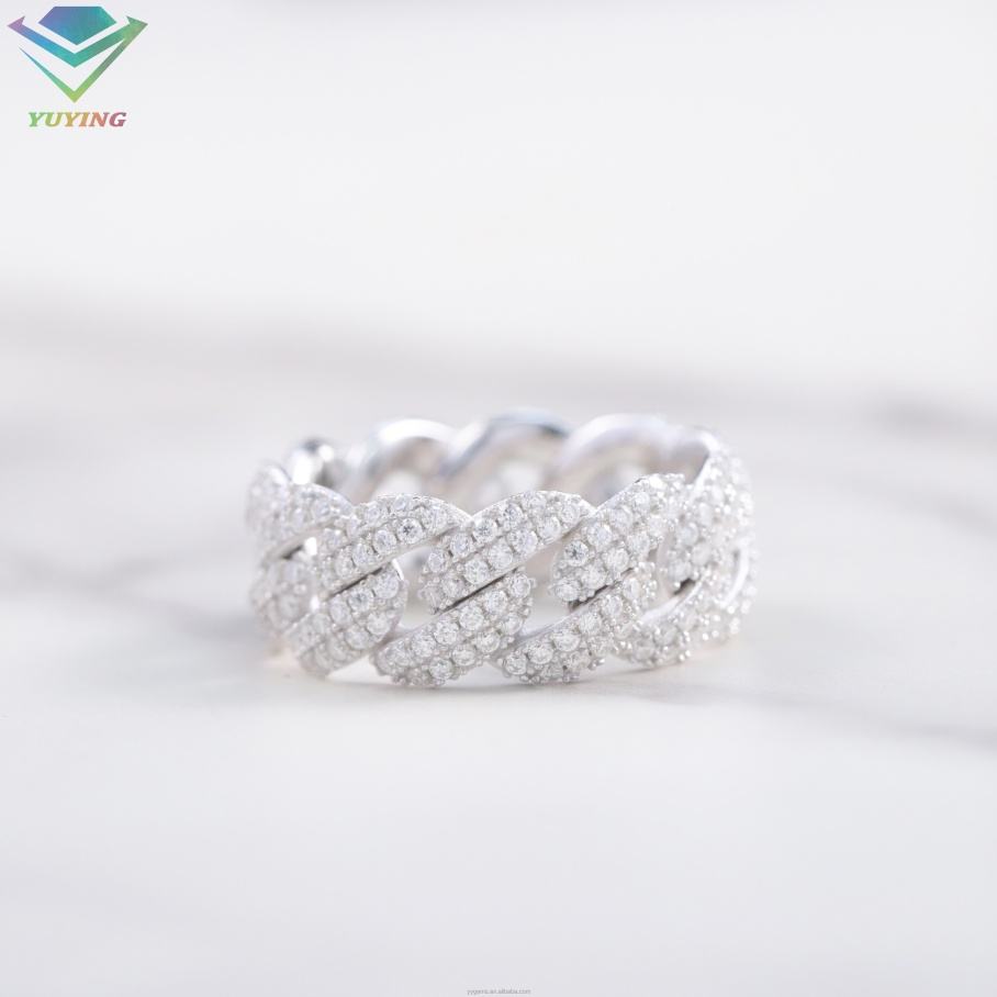 Iced Out 2rows Cuban Ring 18K Gold Plated S925 Silver Cross VVS Moissanite Men's Ring Ready to Ship Ring