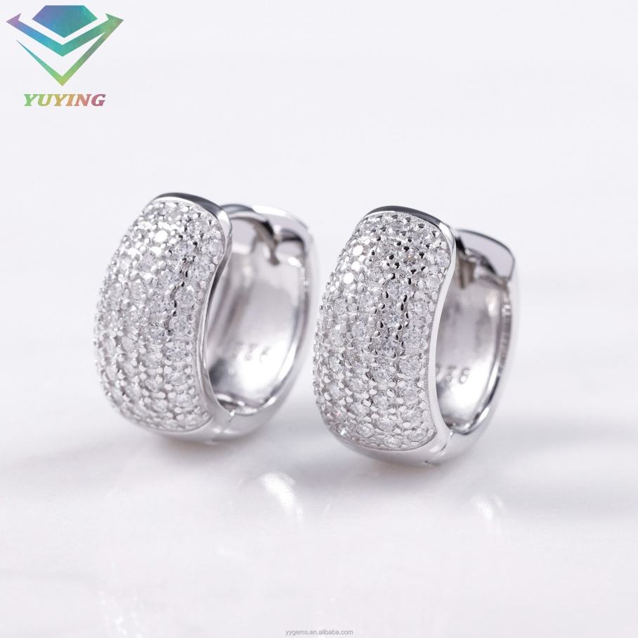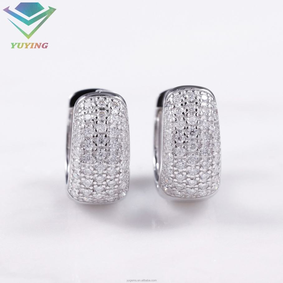 Iced Out 5 Rows Half Circle Round VVS Moissanite Diamonds White Gold Plated 925 Sterling Silver Earring Hoop Women Men