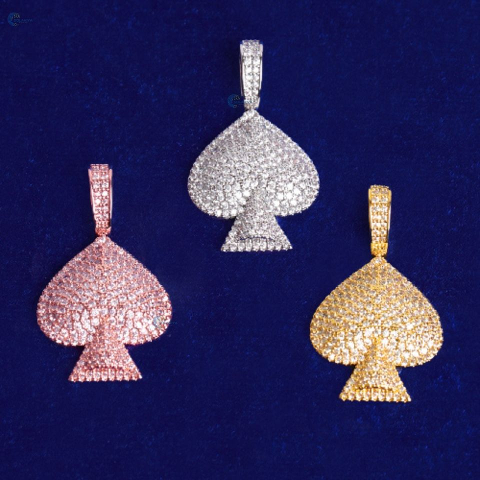 Iced Out Ace of Spades Unisex Pendant Colorless Moissanite Rapper Style Necklace 925 Sterling Silver Hip Hop Pendant