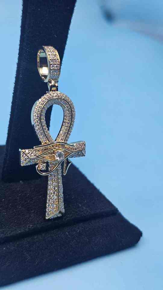 Iced Ankh Egyptian Cross Pendant Vintage Style Moissanite 14K Gold Plated Hip Hop 925 Silver Religious Fine Jewelry Charms