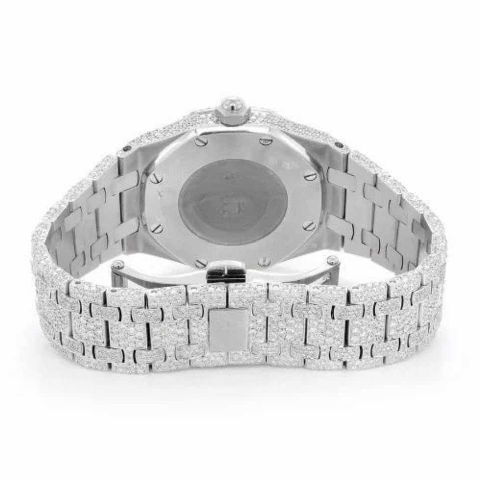 Iced Out Arabic Dial Watch Silver Diamond Look Luxury Stainless Steel Bling Wristwatch