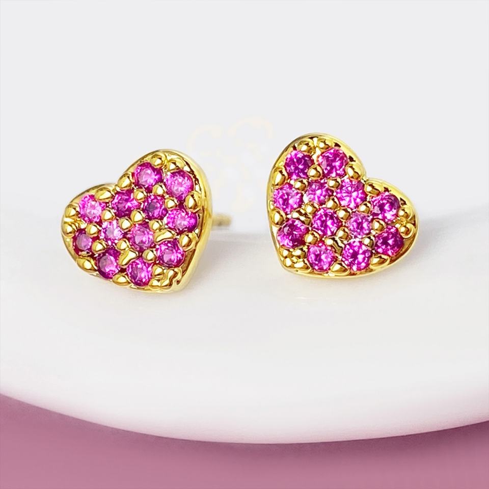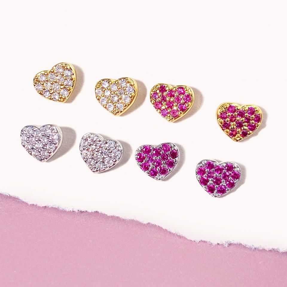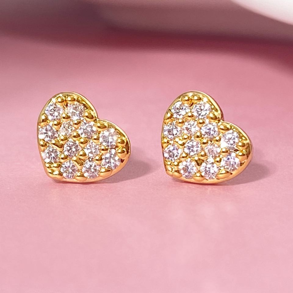 Iced Out CZ Zircon Stud Earrings Korea Style 18K Gold Plated Trendy Heart Earrings for Women