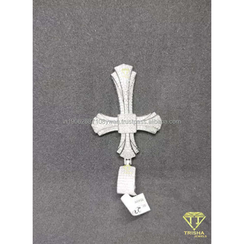 Iced Out Cross Pendant with VVS Lab Grown Diamonds 925 Sterling Silver Rhodium Plated Hip Hop Jewelry For Men