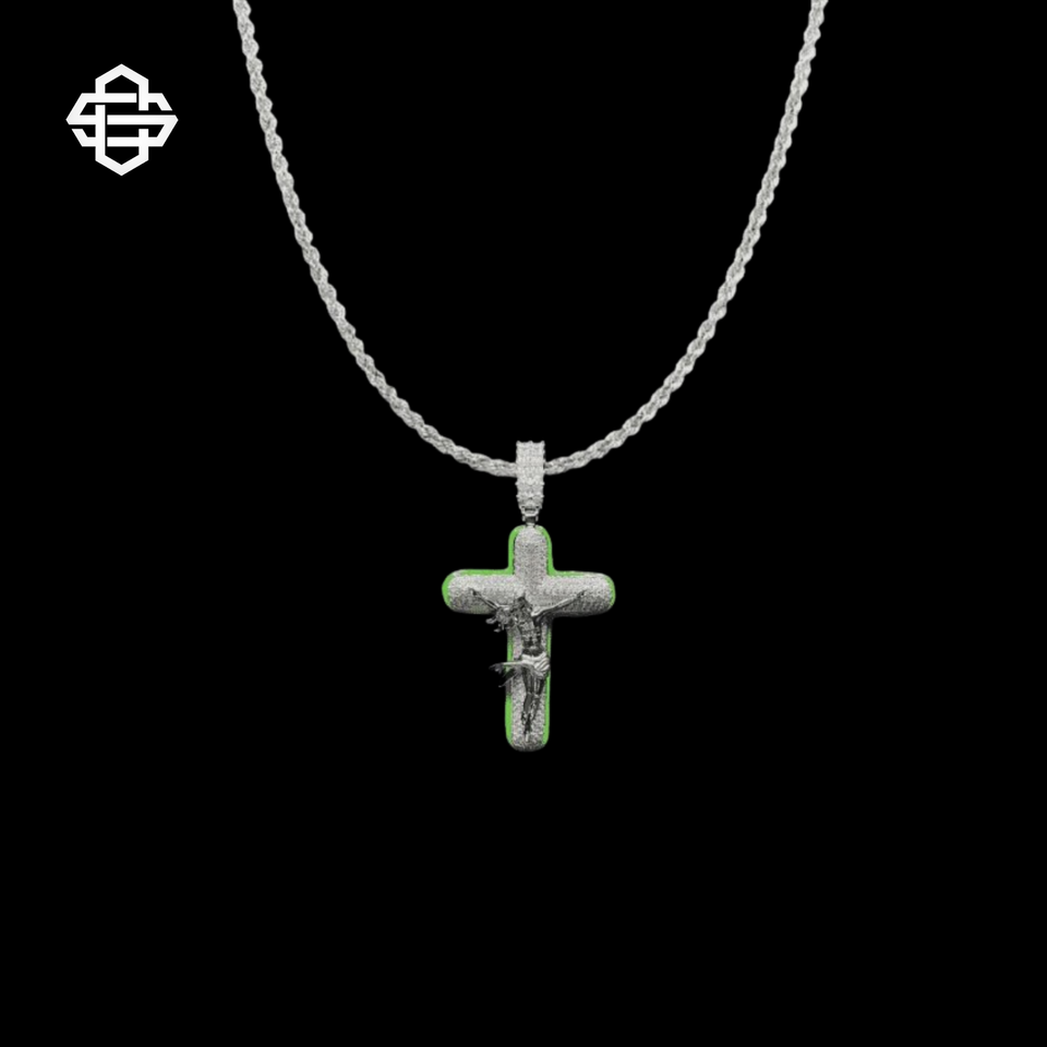 Iced Out Crucifix Cross Pendant Necklace for Men Silver Plated Hip Hop CZ Jesus Religious Pendant Bling Rope Chain Jewelry