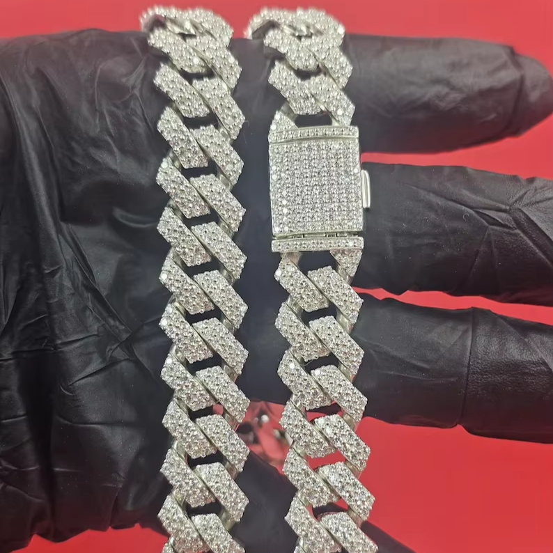 Iced Out Cuban Link Bracelet Moissanite Diamond Look Silver Finish Pave Set Luxury Hip Hop Wrist Chain Jewelry