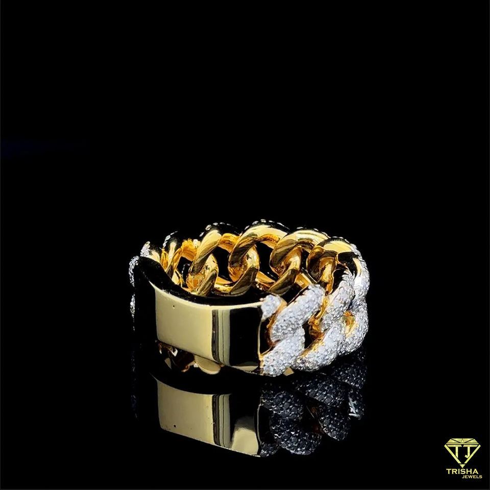 Iced Out Cuban Link Diamond Ring Shinny Moissanite with Rhodium Plating Vintage Style for Wedding and Party