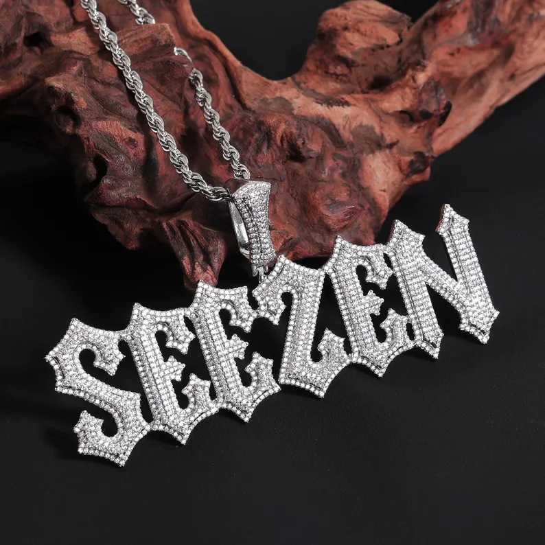 Iced Out Custom Name Pendant for Men Silver Tone Moissanite Hip Hop Jewellery with Rope Chain