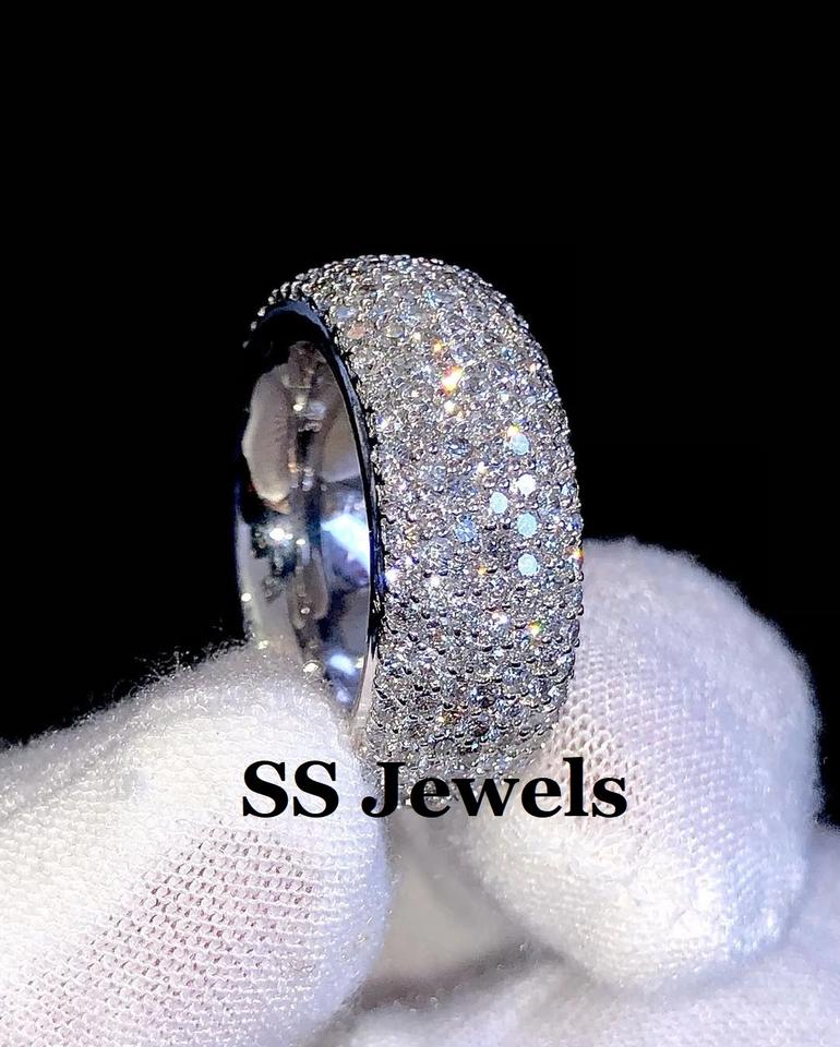 Iced Out Full Pave VVS Moissanite Eternity Band 925 Sterling Silver Rhodium Plated Wide Dome Wedding Ring for Men and Women Gift