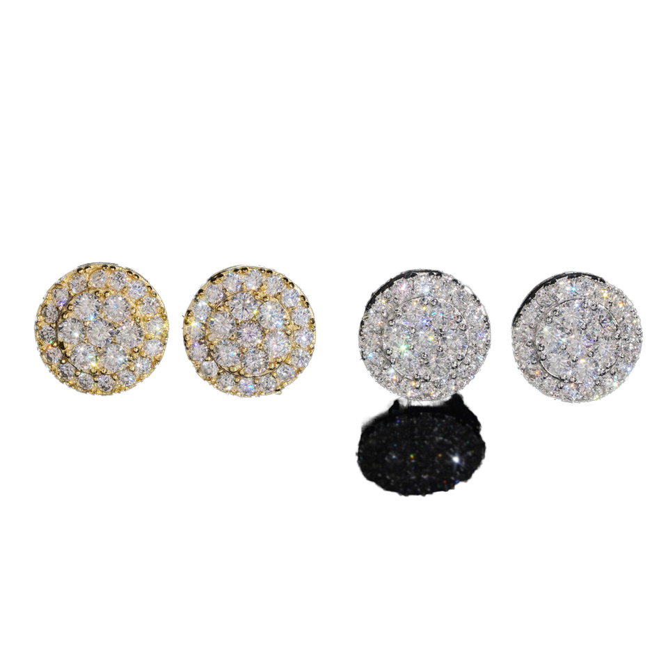 Iced Out Jewelry Round Brilliant Cut VVS Moissanite Diamond Sterling Silver Rose Gold Plated Stud Hip Hop Mens Earrings